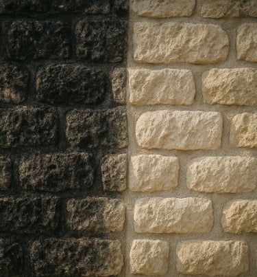 Nettoyage et rafraîchissement de briques, pierres reconstituées ou agglomérées, souvent utilisées en décoration ou en construction moderne.